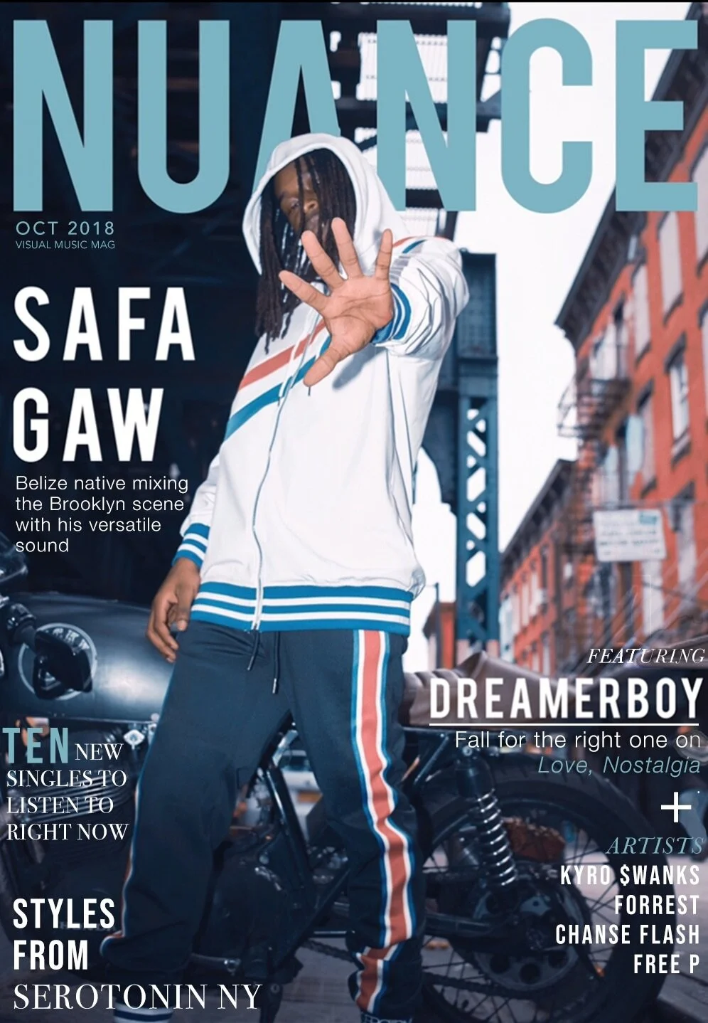 Issue 09: This Edition of The Nuance Magazine FEATURES THE LOS ANGELES SENSATION BLXST as the cover artist. AFTER THE RELEASE OF HIS DELUXE EP, NO LOVE LOST, BLXST HAS EXPLODED ONTO THE R&B SCENE, GRABBING FEATURES WITH INDUSTRY STARS SUCH AS TY DOLLA $IGN AND TYGA. now, he is poised to become the poster child of new age r&b. ALongside blxst, nuance issue 09 features some of the most exciting newcomers to the music, style, and art scene, including Jutes, hidden hills, Jeris johnson, and amindi.